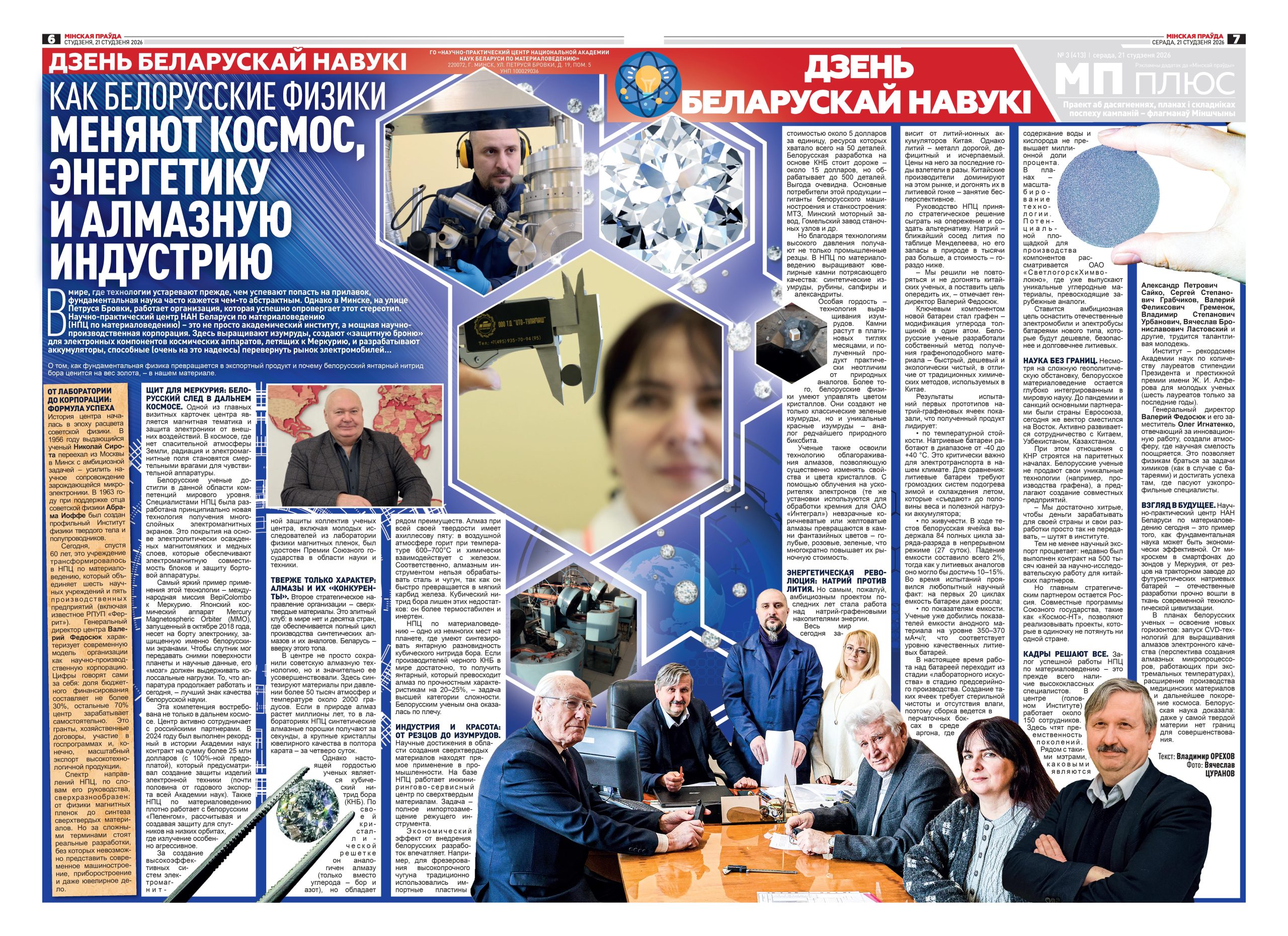 В преддверии дня Белорусской науки в 3 номере газеты Минская правда за 21 января 2026 года, вышло большое интервью с учеными нашего Центра.
